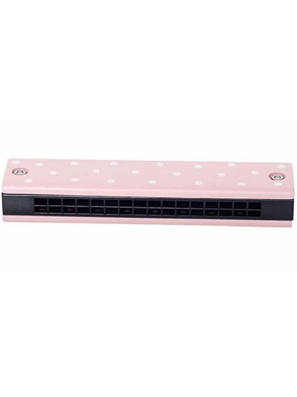 Parfait pour initier les enfants à la musique, cet harmonica rose à pois blancs en bois développera leur talent musical.