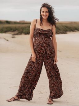 Elégante et transformable en combi bustier, la combinaison future maman Irma coloris marron et noir est parfaite pour les beaux jours.