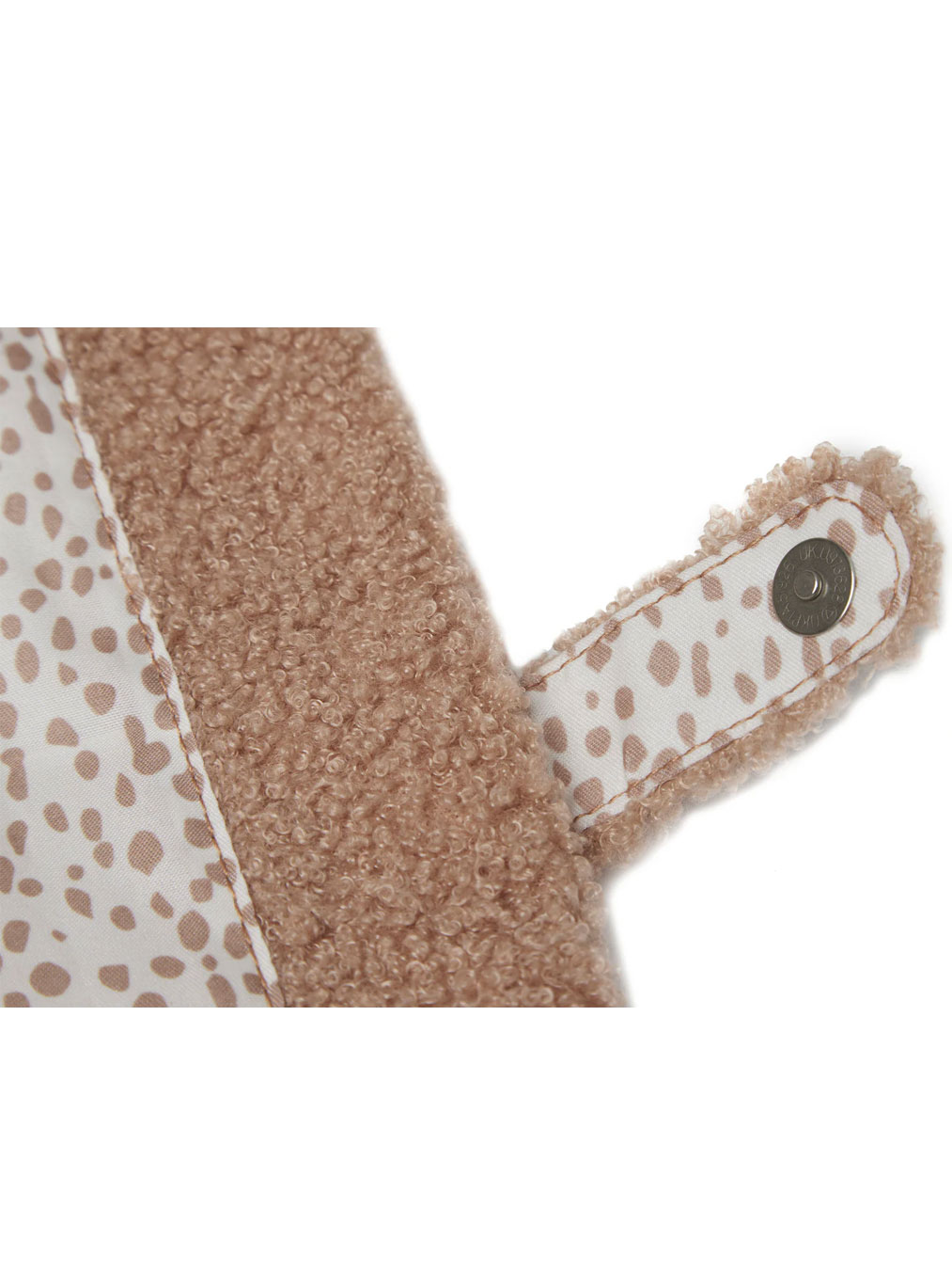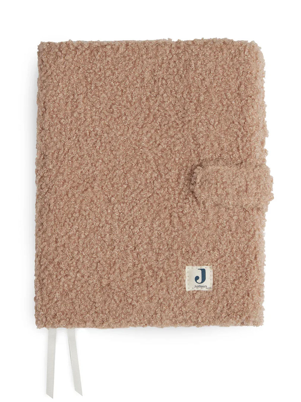 Protège carnet de santé à offrir à bébé à la naissance, en tissu boucle marron. Souple, il se glissera facilement dans votre sac à langer.
