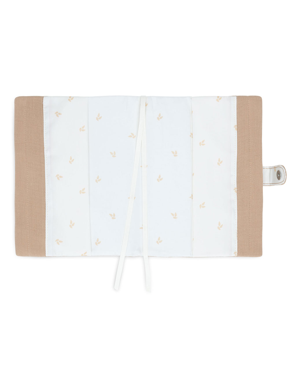 Protège carnet de santé à offrir à bébé à la naissance, en gaze de coton biscuit. Souple, il se glissera facilement dans votre sac à langer.
