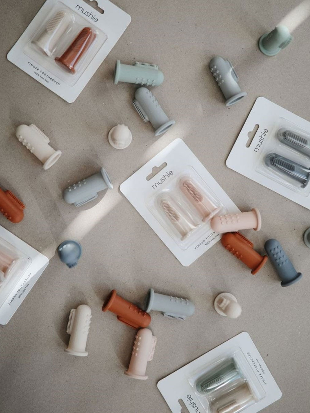 Éliminez les bactéries des gencives de votre bébé avec les brosse à dents de doigts Mushie.