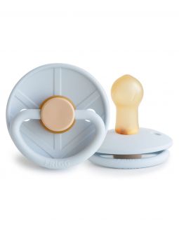 Tétine Frigg Little Viking bleu poudre pour apaiser bébé lors de son besoin de succion. Elle est reconnue pour imiter au plus proche le sein de maman.