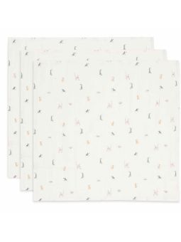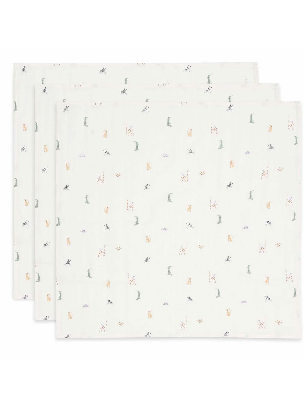 Pack de 3 langes modèle "Jungle Jambo" en coton. Il sert aussi bien couvrir bébé, le sécher rapidement, le protéger des tâches lors des repas,... Un indispensable, et il vaut mieux toujours en avoir un à portée de main!