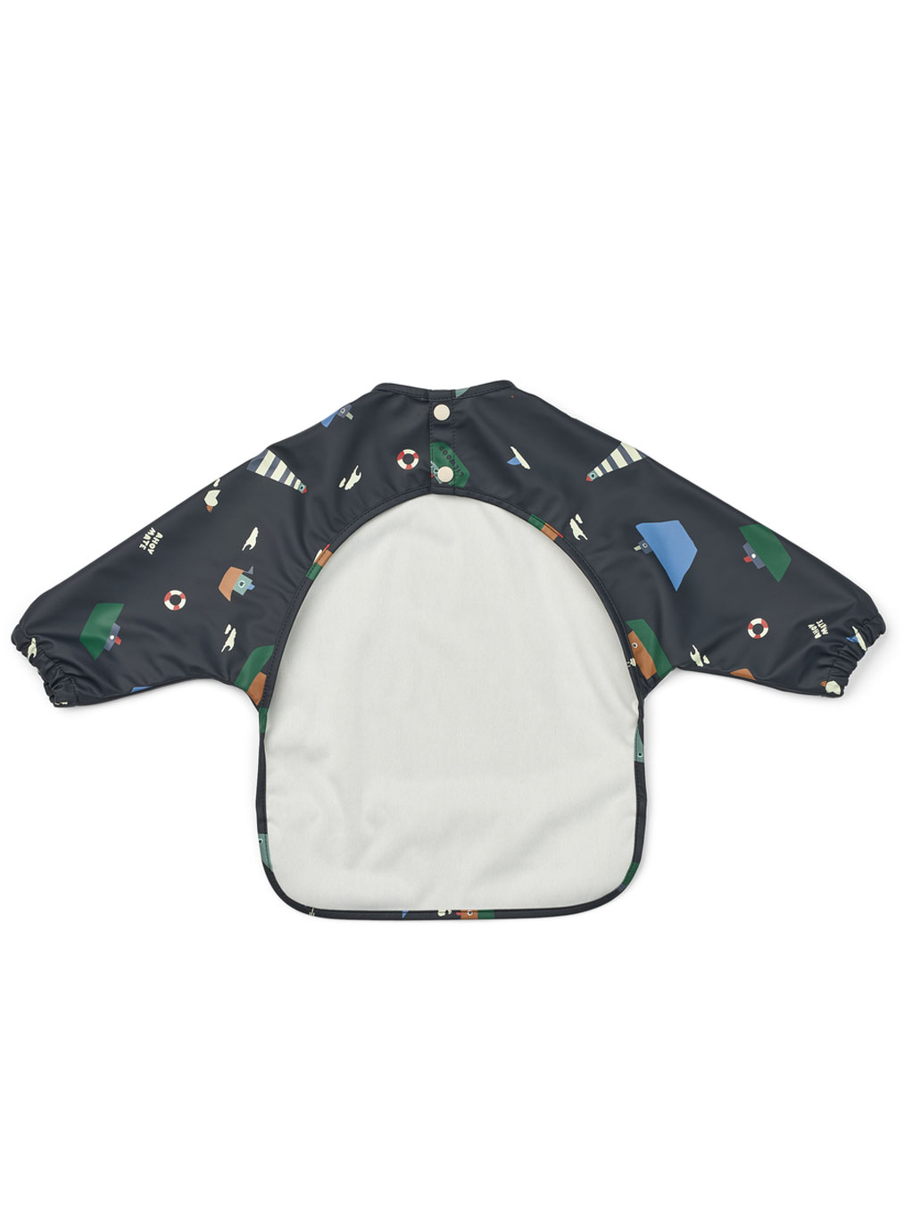 Avec sa poche fourre-tout, ses manches longues et sa matière facile à nettoyer, le bavoir Sailing est indispensable pour protéger les tenues de bébé pendant les repas.