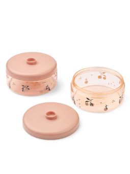 Adorables et pratiques, ces 2 boîtes alimentaires pour bébé décorées de pêches. On peut ainsi emporter partout avec nous les aliments des enfants : pique-nique, goûter, ou encore les purées de fruits de bébé.