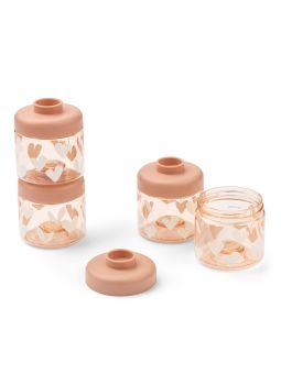 Adorable et pratique, ce lot de 4 boîtes alimentaires pour bébé Dominique motif coeurs! On peut ainsi emporter partout avec nous les aliments de bébé mais aussi les conserver facilement.