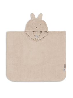 Poncho lapin Miffy couleur sable en éponge pour absorber et sécher rapidement les enfants lorsqu'ils sortent de l'eau. La capuche permet de protéger et sécher également leur tête et cheveux.