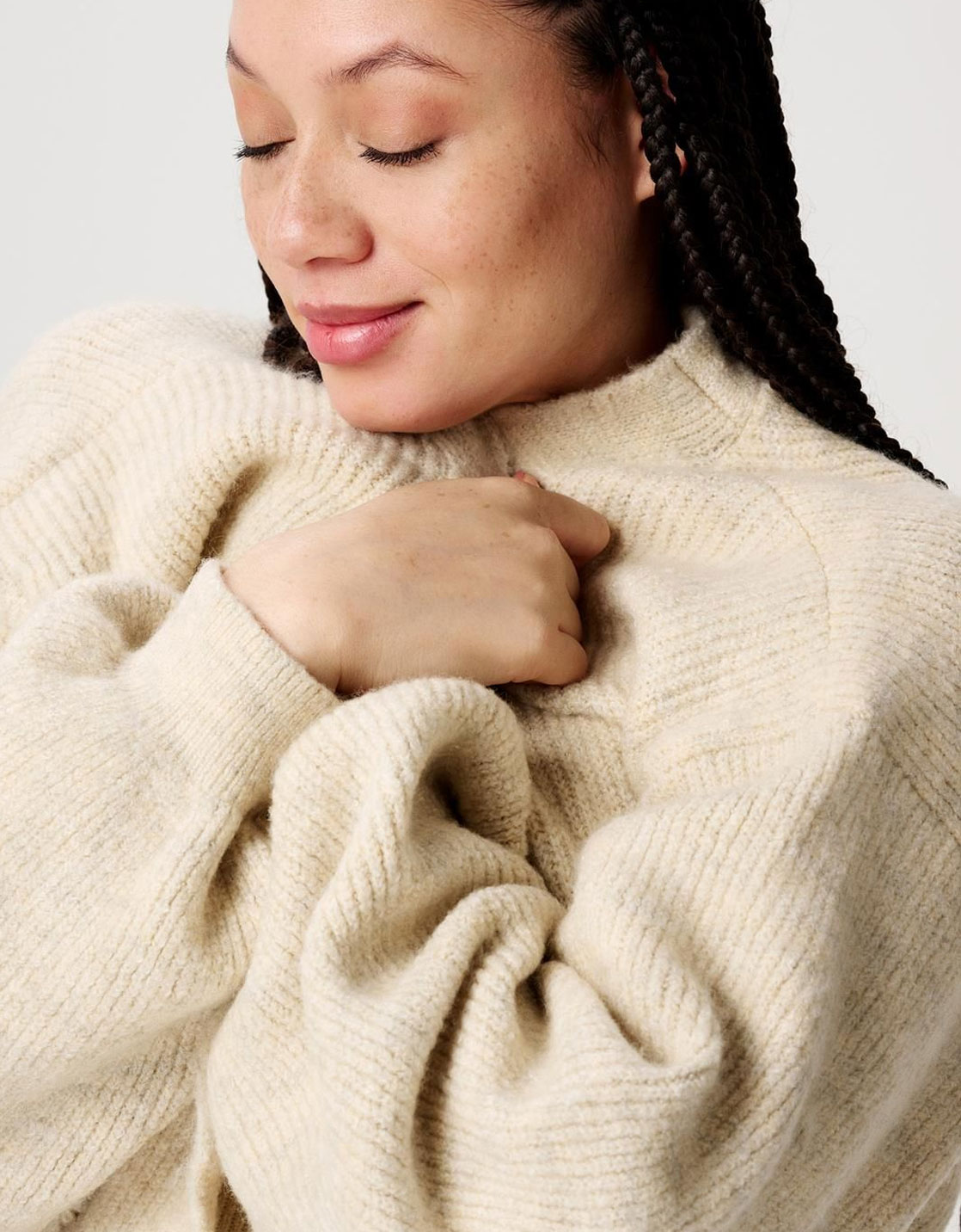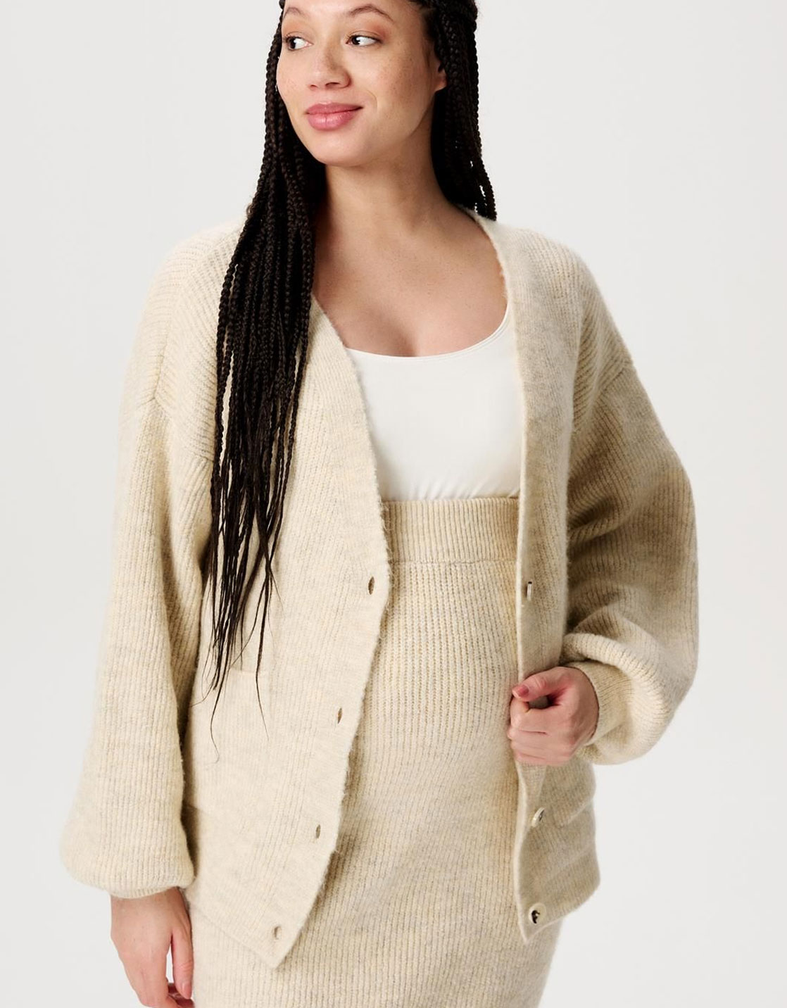 Doux et chaud, le cardigan Kaavi en maille beige offrira à votre ventre toute la place nécessaire durant les neuf mois de la grossesse.