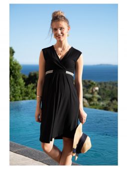 Cette robe de grossesse noire sera parfaite pour l'été : elle est légère et fluide. Selon les chaussures associées elle sera parfaite en toutes circonstances.