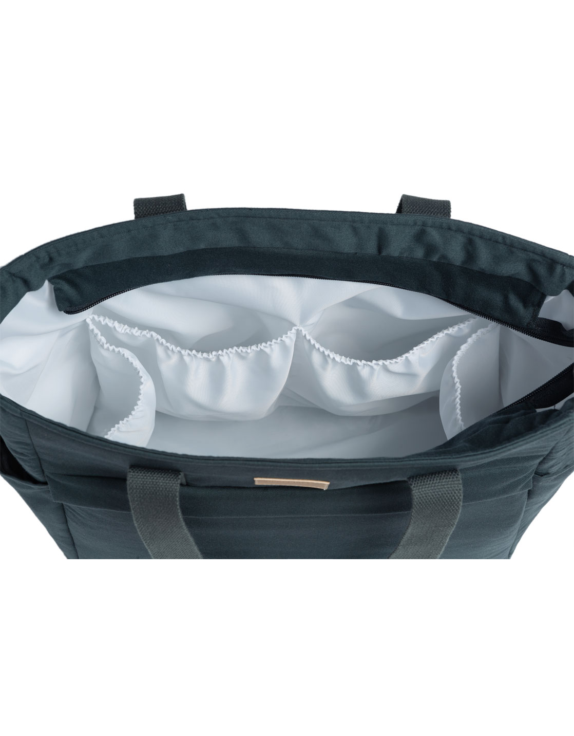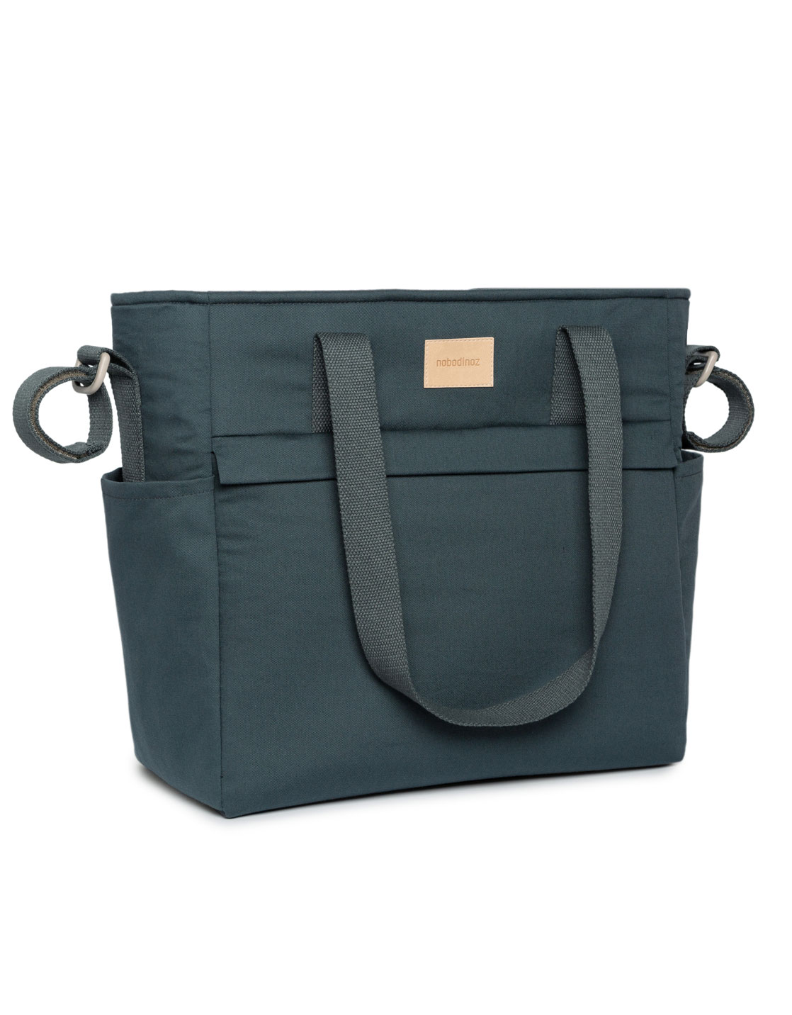 En plus de sa forme structurée et son style intemporel, le grand sac à langer Bleu Carbone en coton sergé est également imperméable.