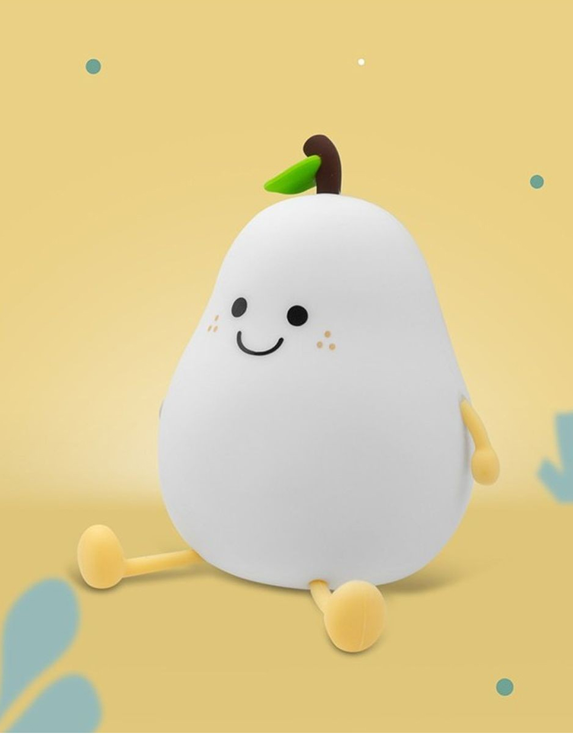Apportons du fun et du ludique dans cet objet si attachant pour nos enfants! Une veilleuse en forme de poire, qui peut aider à l'endormissement, grâce à son intensité lumineuse variable et à son changement de couleur possible.