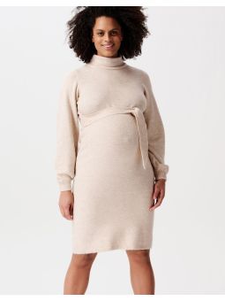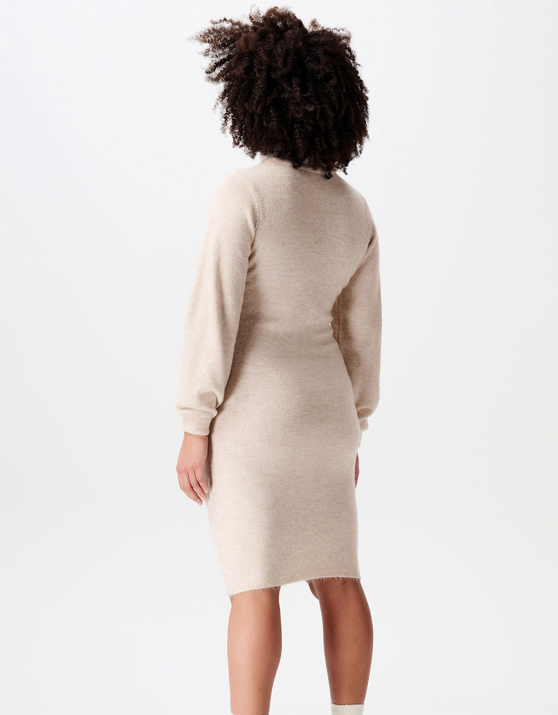 Robe future maman modèle Mico beige que vous apprécierez de porter par la chaleur de sa matière. Sa coupe près du corps marque élégamment la silhouette.