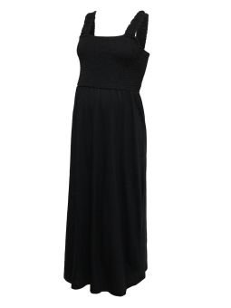 Col carré devant et dos, la jolie robe noire Ivy a de larges bretelles élastiques smockées comme sur la partie haute de la robe. Sa coupe cintrée mais en avant la silhouette.